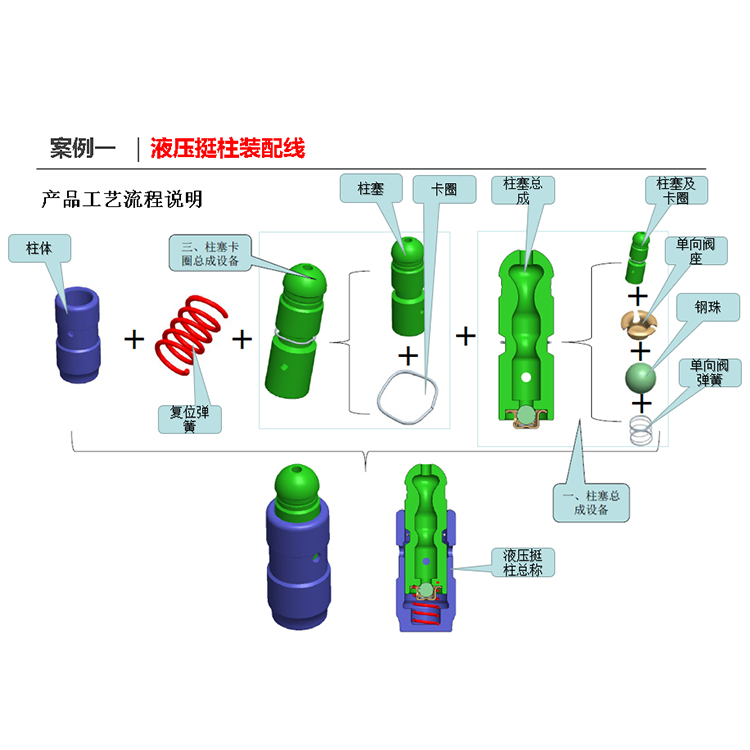 1、送料裝置完成球座、彈簧、柱塞、鋼珠等零件的上料