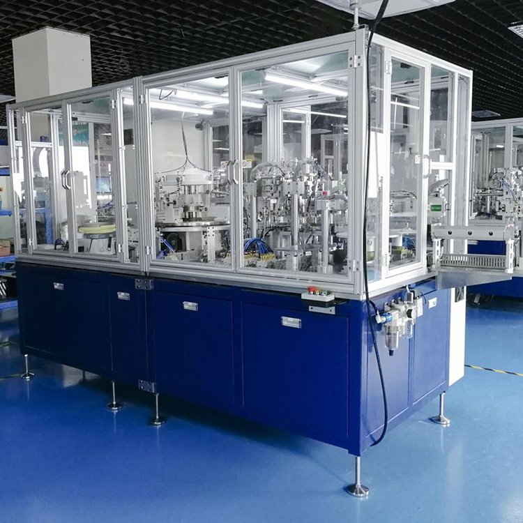 2、產(chǎn)品上料裝配裝置通過分度裝配系統(tǒng)、搬運(yùn)機(jī)械手、何服驅(qū)動等完成產(chǎn)品搬運(yùn)至各工位進(jìn)行組裝、檢測等